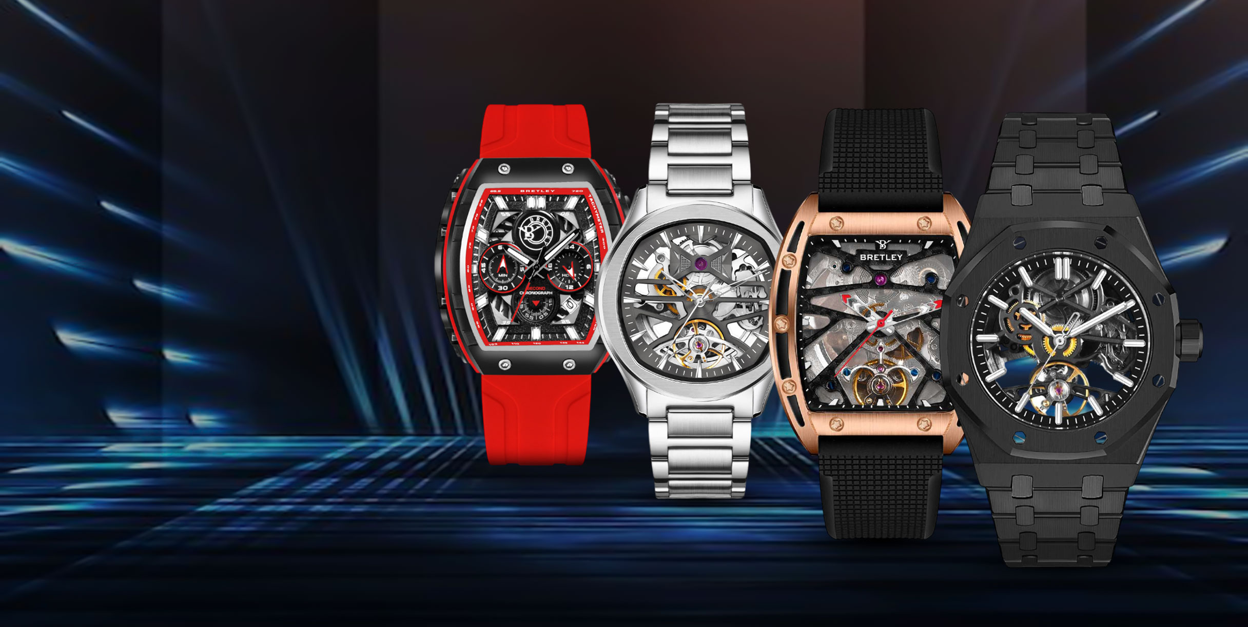 Bretley offers precision-engineered automatic movements, bold skeleton designs, durable materials, exclusive limited editions, exceptional craftsmanship, and trusted customer support with comprehensive warranties.